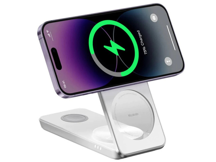 شارژر وایرلس چندکاره Mcdodo CH-1150 یه محصول خاص با طراحی مدرن و مگسیف قدرتمنده که بهت این امکان رو میده تا سه دستگاه مهم اپلیت رو همزمان، بیسیم و مرتب شارژ کنی؛ آیفون، اپلواچ و ایرپاد همه روی یه استند جمعوجور، بدون دردسر کابلهای متعدد. با پشتیبانی از توان خروجی ۲۵ وات، سرعت شارژ بهطور محسوسی بالاست. قسمت مخصوص آیفون با سیستم MagSafe طراحی شده تا گوشی رو سریع و محکم روی پایه نگه داره — چه به صورت عمودی برای تماس تصویری، چه افقی برای دیدن ویدیو. نیازی به تنظیم دستی یا نگرانی بابت جابجایی گوشی نیست. این پایه قابلیت تاشدن و حمل آسان داره، پس میتونی راحت توی کیف بندازی و ببریش سرکار یا سفر. زاویه استند هم قابل تنظیمه، پس راحت میتونی گوشی رو توی زاویه دلخواهت قرار بدی. بدنه از آلیاژ آلومینیوم سبک ساخته شده و ظاهر مینیمال و شیکی به میز کارت میده. پورت ورودی Type-C هست و برای استفاده بهینه، پیشنهاد میشه از یه آداپتور PD قوی هم استفاده کنی تا حداکثر توان دستگاه آزاد بشه. اگه بهدنبال یه شارژر چندکاره وایرلس برای نظمدادن به ستاپ اپلیت هستی که هم سریع باشه و هم خوشساخت، CH-1150 مکدودو یه انتخاب مطمئنه. 🎯 شارژر وایرلس 3 در 1 مک دودو CH-1150 – Peace Series یک استند، سه کارکرد ⚡🎧⌚ 📱 شارژ گوشی (MagSafe آیفون 12+) تا 15 وات 🎧 شارژ هندزفری وایرلس تا 5 وات ⌚ محل قرار دادن شارژر اپل واچ (شارژر جداگانه لازم است) تا 5 وات ✨ ویژگیها: • طراحی تاشو و استند زاویهدار (60 درجه) • 8 آهنربای قوی برای اتصال امن گوشی • 3 LED برای نمایش وضعیت شارژ و هشدارها • تشخیص جهت گوشی عمودی، افقی یا خوابیده • سازگار با Qi و MagSafe • ورودی Type-C با آداپتور 27 واتی 📏 ابعاد: 160x72x18.2 میلیمتر | وزن: 193 گرم 💼 سبک، جمعوجور و مناسب برای میز کار یا سفر