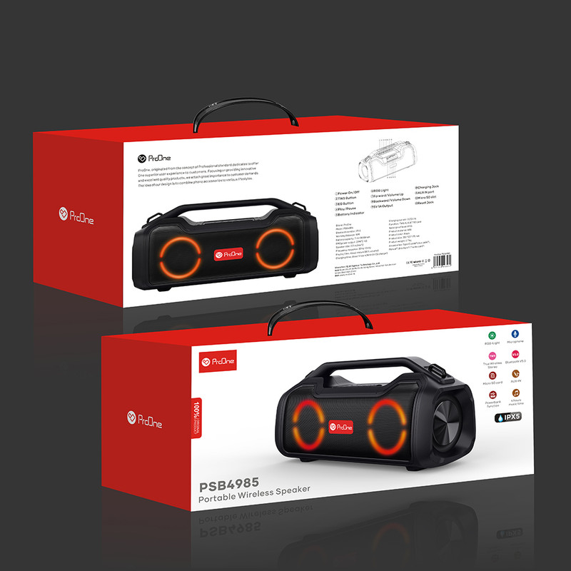 اسپیکرهای بیسیم، یکی از جذابترین لوازم جانبی هستند که تاکنون طراحی و تولید شده است. بلندگوهای بیسیم با فراهم آوردن امکان پخش موزیک بدون وابستگی به کابل شارژ، کاربران را در هر شرایط و محیطی همراهی میکنند. اسپیکر بلوتوثی پرووان مدل PSB4985 یک ابزار برای پخش فایلهای صوتی است. به دلیل طراحی منحصربهفرد اسپیکر PSB4985 صدا در محیط به صورت کامل پخش میشود. با قابلیت ویژه TWS در این اسپیکر، شما میتوانید دو اسپیکر پرووان PSB4985 را به هم متصل کرده و حجم صدای موسیقی را دو برابر کنید. اسپیکر پرووان PSB4985 یک اسپیکر پرتابل است که دارای دستگیره است و به راحتی هر جایی که بخواهید میتوانید آن را همراهتان ببرید. با اسپیکرهای پرووان بدون نیاز به گوشی، با کیفیتی بالا تماسهای خود را جواب بدهید که برای این کار کافی است دکمه پاور را دو بار فشار بدهید. یکی از ویژگیهای مهم این اسپیکر قابلیت شارژ گوشی است و جدا از اسپیکر یک پاوربانک است که به راحتی گوشی شما را با کابل شارژ میکند. اسپیکر بلوتوثی قابل حمل PSB4985 ضد آب بوده و دارای استاندارد IPX5 است. این اسپیکر با ابعادی معادل طول 390، عرض 137 و ارتفاع 175 میلیمتر طراحی و تولید شده است و قطر هر دو طرف اسپیکر 3.5 اینچ است که خود اسپیکر وزنی معادل 2700 گرم دارد. زیر اسپیکر دو پایه مسطح جهت قرار دادن اسپیکر روی سطوح طراحی شده و در قسمت بالای اسپیکر PSB4985 یک پنل کاربردی جهت قطع و وصل کردن، عقب و جلو زدن موسیقی، تغییر حالات پخش و دکمه روشن و خاموش قرار دارد. این اسپیکر دارای رادیو و میکروفون داخلی است و پورتهای اتصال USB، جک 3.5 میلیمتری صدا و شیار کارت حافظه و ورودی شارژ اسپیکر قرار دارد. قدرت این اسپیکر در مجموع 40 وات بوده و دارای باتری 3600 میلیآمپر با 7.4V است که بهطور نرمال 4 ساعت زمان پخش موسیقی دارد و مدت زمان شارژ آن 5 ساعت است. اسپیکر زیبا و جذاب PSB4985 دارای رقص نور RGB است که با آهنگ تم رنگی جذابی را به تصویر میکشد.