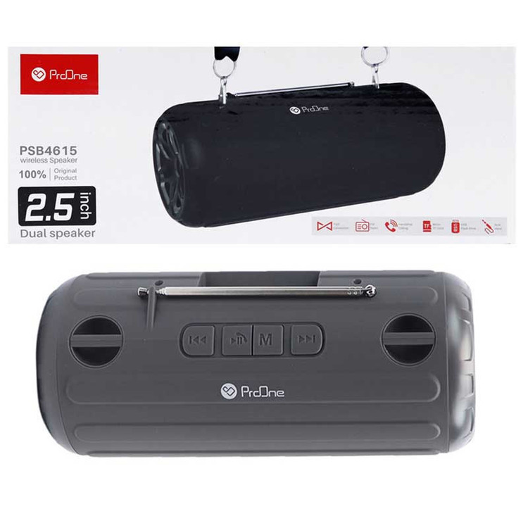 اسپیکر بلوتوث پرووان مدل PBS4615 یکی از جدیدترین مدل های این شرکت است. این محصول که در ابعاد حدودا ۲۱ سانتی متر طول و ۱۰ سانتی متر قطر می باشد یک اسپیکر استوانه ای شکل است که به راحتی نیز قابل حمل می باشد.