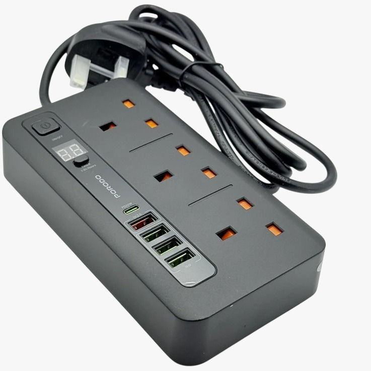 چند راهی برق پرودو 20 وات pd-fwch013 دارای چندین قابلیت کاربردی می باشد این محضول دارای سه خروجی یونیورسال برق شهری (قابلیت اتصال انواع سرسوکتهای EU-AU-us-uk ) و سه خروجی یو اس بی استاندارد و یک یو اس بی شارژ سوپر فست QC3.0 و یک خروجیPD 20W برای شارژ مک بوک و لپ تاپهایی که سازگار با شارژ پی دی باشند . همچنین این محصول دارای محافظ داخلی برق محافظ ولتاژ و بدنه ضد حریق می باشد . طول کابل ای محصول 2 متر میباشد .تایمر مخصوص دستگاه که قابلیت زمانبندی یک الی بیست وچهار ساعت را برای کاربر ایجاد میکند همچنین دارای کلید خاموش و روشن میباشد که برای مواقعی که به چندراهی نیازی ندارید کافیست کلید خاموش را بزنید و نیازی به کشیدن سیم از پریز برق نداشته باشید.