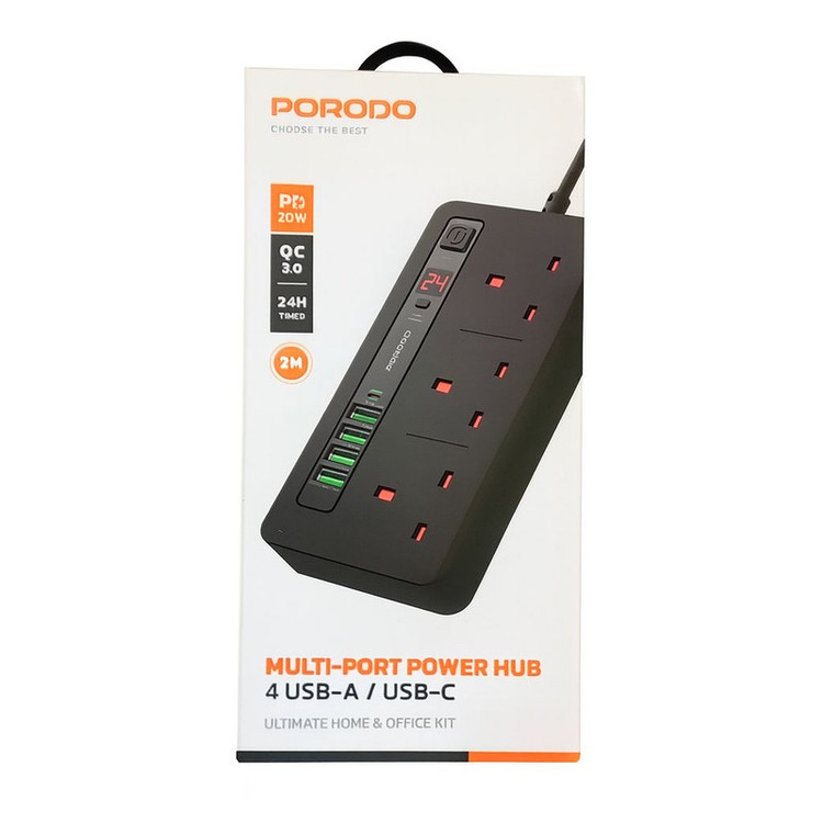 چند راهی برق پرودو 20 وات pd-fwch013 دارای چندین قابلیت کاربردی می باشد این محضول دارای سه خروجی یونیورسال برق شهری (قابلیت اتصال انواع سرسوکتهای EU-AU-us-uk ) و سه خروجی یو اس بی استاندارد و یک یو اس بی شارژ سوپر فست QC3.0 و یک خروجیPD 20W برای شارژ مک بوک و لپ تاپهایی که سازگار با شارژ پی دی باشند . همچنین این محصول دارای محافظ داخلی برق محافظ ولتاژ و بدنه ضد حریق می باشد . طول کابل ای محصول 2 متر میباشد .تایمر مخصوص دستگاه که قابلیت زمانبندی یک الی بیست وچهار ساعت را برای کاربر ایجاد میکند همچنین دارای کلید خاموش و روشن میباشد که برای مواقعی که به چندراهی نیازی ندارید کافیست کلید خاموش را بزنید و نیازی به کشیدن سیم از پریز برق نداشته باشید.