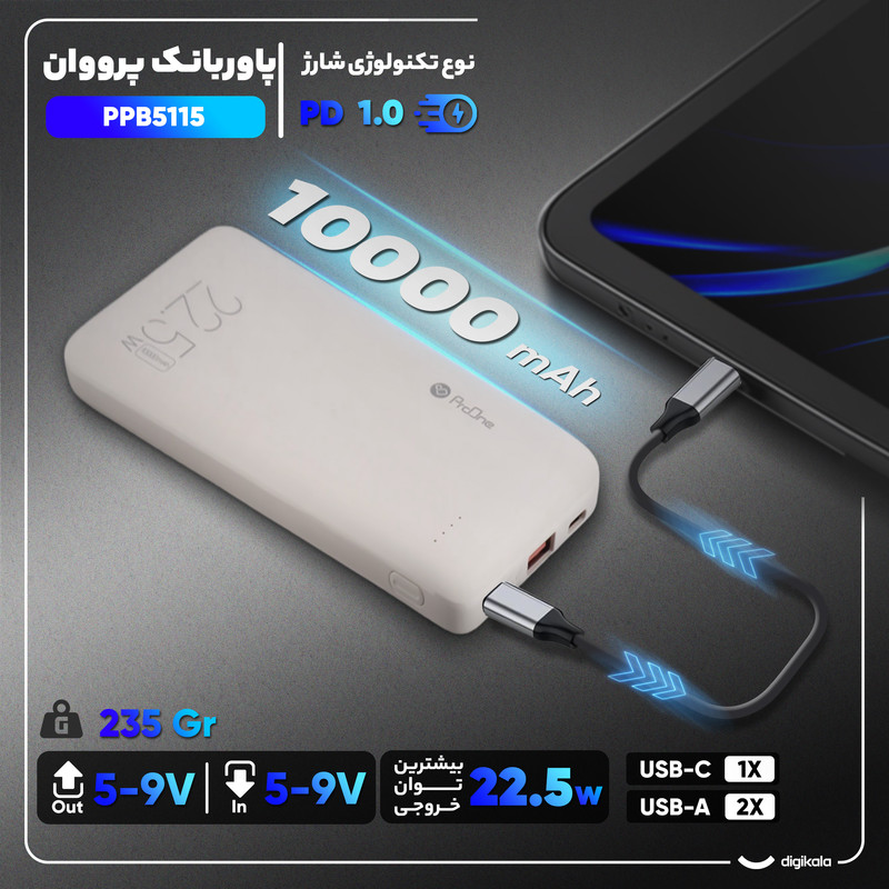 پاوربانک پرووان مدل PPB5115 با ظرفیت 10,000 میلیآمپر ساعت، یکی از محصولات با کیفیت و پرکاربرد پرووان است. این مدل به دلیل طراحی کارآمد، قابلیت شارژ سریع، و ویژگیهای ایمنی مناسب، برای استفاده روزمره و در سفر بسیار مورد توجه قرار گرفته است.