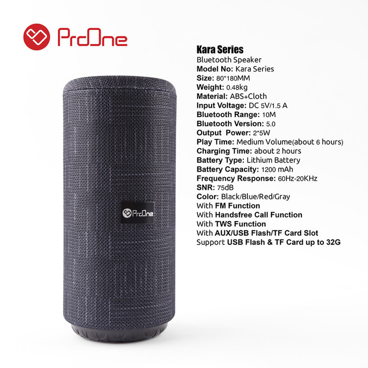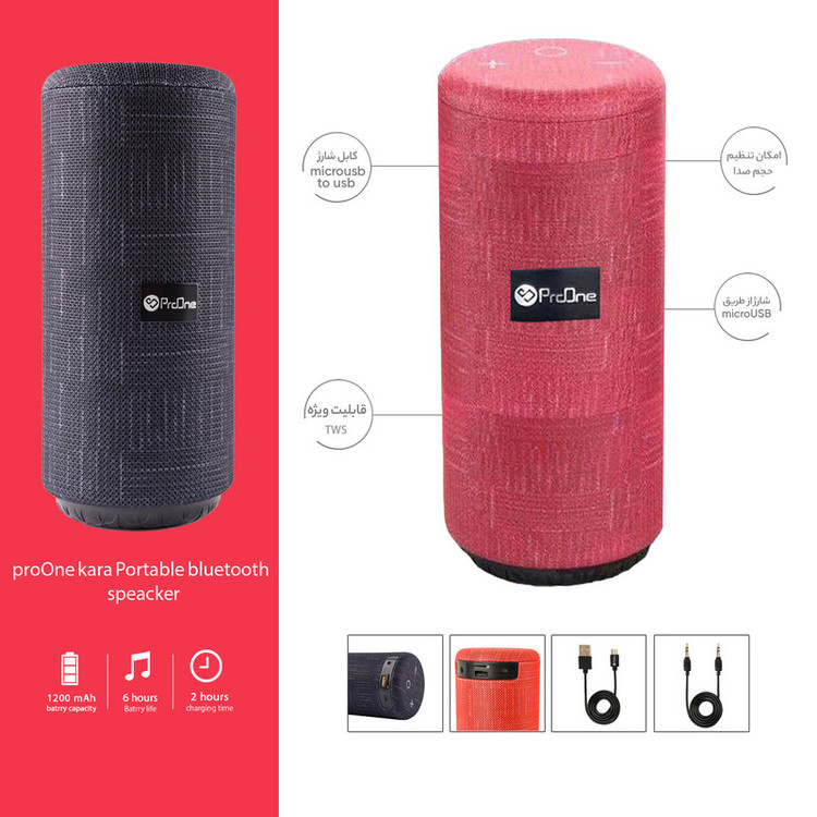اسپیکرهای بی سیم یکی از جذاب ترین لوازم جانبی هستند که تا کنون طراحی و تولید شده است. بلندگوهای بی سیم با فراهم آوردن امکان پخش موزیک بدون وابستگی به کابل شارژ کاربران را در هر شرایط محیطی همراهی خواهند کرد. به همین دلیل در گروه لذت بخش ترین لوازم دیجیتالی و هوشمند محسوب میشوند. اسپیکر بلوتوث پرووان مدل Kara-02 یک ابزار برای پخش فایلهای صوتی است. به دلیل طراحی استوانه ای شکل اسپیکر Kara series صدا در تمام اطرافه صورت 360 درجه پخش میشود. اسپیکر Kara series پرووان همراه شما در ماجراهای زندگی است. با قابلیت ویژه TWS در این اسپیکر، شمامی توانید دو اسپیکر پرووان Kara series را به هم متصل کرده و حجم صدای موسیقی را دو برابر کنید. شما با افزایش صدای موسیقی تجربه فیلم با صدای استریو را خواهید دید. اسپیکر پرووان Kara series یک اسپیکر پرتابل است و هر جایی که بخواهید میتوانید آن را همراهتان ببرید. باتری داخلی اسپیکر ظرفیت برابر با 1200 میلیآمپر ساعت دارد. با دکمههای تنطیم صدا میتوانید موزیک را نیز عوض کنید، همچنین با دکمه پاور اسپیکر شما قادر به خاموش روشن کردن دستگاه، پخش و توقف موزیک و دبل کلیک باعث تغییر MOD موزیک میشود. با اسپیکرهای پرووان بدون نیاز به گوشی با کیفیتی بالا تماسهای خود را جواب بدهید، فقط کافی ست دکمه پاور را دوبار فشار بدهید.