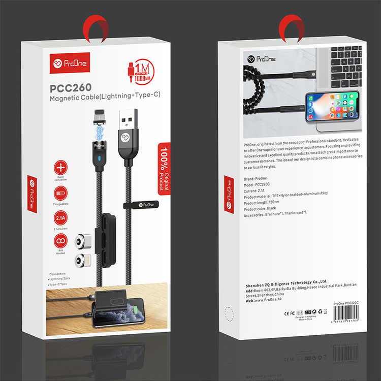 کابل شارژ 1 متری سری مگنتی لایتنینگ ( دو عدد) سری مگنتی تایپ سی (یک عدد)