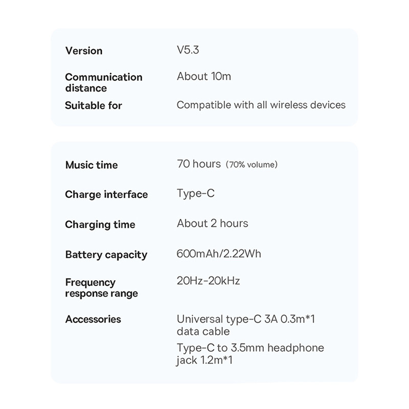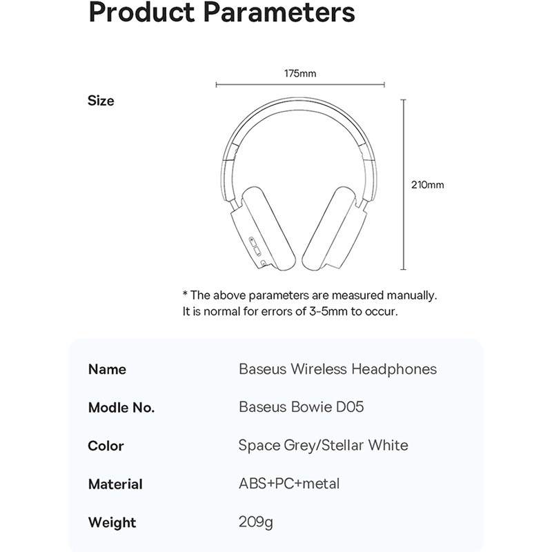 هدفون بلوتوثی باسئوس مدل Bowie D05 به صورت تاشونده طراحی شده تا حمل آن راحت تر باشد. ارتفاع گوشی های این هدفون نیز قابل تنظیم است و میتواند متناسب با ابعاد سر شما تنظیم شود. ارائه صدای Hi-Fi این محصول باعث می شود صدای سه بعدی را تجربه کنید. همچنین رنج پاسخ فرکانس بین 20 هرتز تا 20 کیلوهرتز است و نرخ تاخیر انتقال صدای آن فقط 0.06 میلی ثانیه است. شما علاوه بر اتصال از طریق بلوتوث نسخه 5.3 ، می توانید از طریق کابل تایپ سی به AUX نیز هدفون را به سیستم یا گوشی های که جک 3.5 میلی متری صدا دارند وصل کنید.