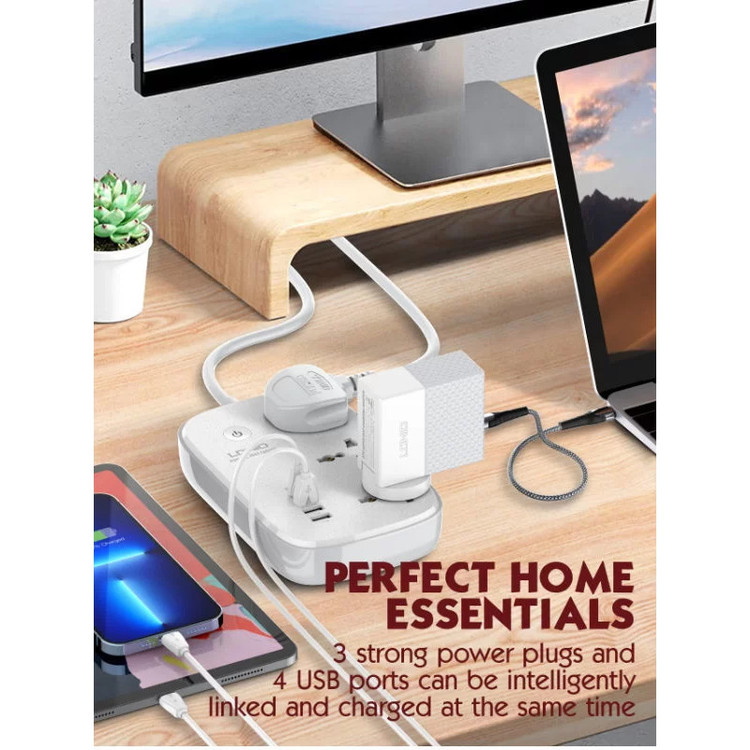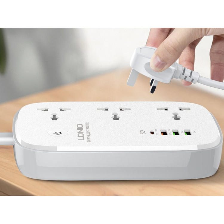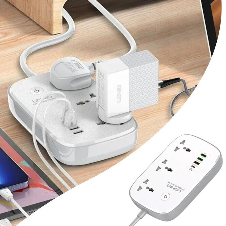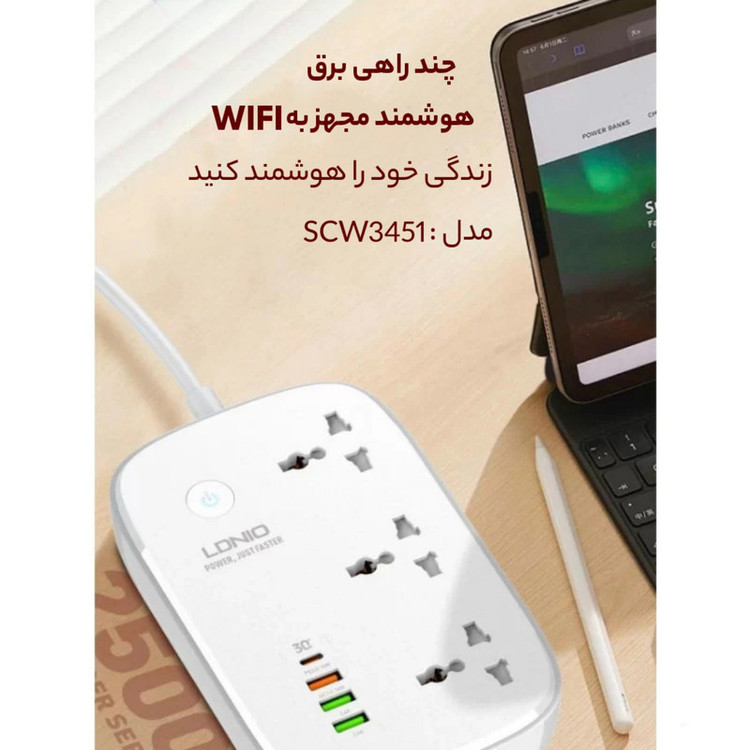 این روز ها حتی در زندگی روزمره تمام افراد استفاده از دستگاه های الکترونیکی افزایش یافته است. به همین علت برای تامین انرژی آن ها به لوازم جانبی نظیر چند راهی و محافظ های برق بیشتر از گذشته احتیاج پیدا خواهیم کرد. چند راهی الدنیو LDNIO SCW3451 بهترین انتخاب برای میز کار افراد می باشد. این چندراهی دارای 3 خروجی برق، 3 خروجی یو اس بی و 1 خروجی تایپ سی است. همینطور از دیگر قابلیت های این چندراهی می توانیم به ارتباط WIFI برای کنترل از راه دور توسط موبایل اشاره نماییم.چندراهی LDNIO SCW3451 از پلاستیک ABS و PC تولید گردیده. این چند راهی از 3 خروجی برق و 4 پورت شارژ شامل 3 خروجی یو اس بی و 1 خروجی تایپ سی بهره مند است. چندراهی برق الدینیو دارای ابعادی برابر با 177x112x87 میلی متر است.خروجی های برق این محصول نیز یونیورسال هستند و از سازگاری با دوشاخه های UK، US و EU بهره مند می باشند. وجود این خروجی ها شما را از تهیه و خرید تبدیل برق بی نیاز می کند. این محصول دارای سیم ضخیم و مقاومی برابر با طول 2 متر می باشد.جهت تنظیم میزان جریان برق یک کلید مرکزی بر روی چندراهی برق الدینیو SCW3451 تعبیه شده است. هر زمان خطر جریانی این چندراهی را تهدید کند با به راه افتادن فعالیت این کلید از SCW3451 محافظت خواهد شد. این کلید برای وصل کردن گوشی همراه به چند راهی نیز قابل استفاده است.ولتاژ ورودی این محصول تقریبا برابر 100 تا 250 ولت و بیشترین جریان ورودی آن 10 آمپر است. پورت تایپ سی این محصول دارای قابلیت شارژ سریع PD است. همینطور این پورت از جریان/ولتاژ خروجی 5V/3A-9V/3A-12V/2.5A-15V/2.5A با بیشترین توان خروجی 30 وات بهره مند می باشد.یکی از خروجی های یو اس بی نارنجی رنگ به کار رفته در این محصول قادر به پشتیبانی از شارژ سریع QC است. این پورت مجهز به جریان/ولتاژ خروجی 5V/3A-9V/2A-12V/1.5A با بیشترین توان خروجی 18 وات است.پورت های خروجی USB سبز رنگ نیز هر کدام از فناوری Auto ID بهره مند هستند. در این پورت ها جریان/ولتاژ خروجی 5V/2.4A است.از تفاوت های اصلی این دستگاه با نمونه های دیگر قابلیت اتصال و کنترل از روی گوشی هوشمند - قطع و وصل کردن جریان برق - بدنه ضد حریق استفاده از مس در ساخت پایه ها برای دوام و کیفیت بهتر قابلیت اسمارت گارد برای جلوگیری از ورود ولتاژ ناخواسته به دستگاه های شما می باشد
