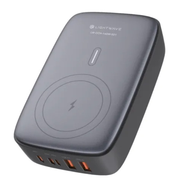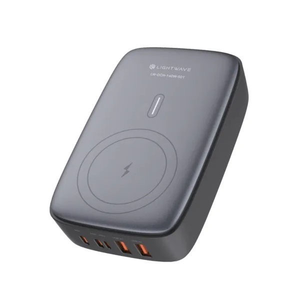 برای اینکه گوشی، تبلت یا لپتاپ شما خوب و سریع شارژ شود نیاز است یک شارژر و کابل گوشی مناسب برای آن تهیه کنید که متناسب با ولتاژ باتری برقرسانی کند و از رسیدن آسیب به دستگاه جلوگیری شود. یکی از شرکتهای معتبر در زمینه تولید لوازم جانبی دیجیتال کمپانی لایت ویو است و شارژر رومیزی فوق سریع لایت ویو مدل LW-DCH140W-501 را طراحی کرده که با داشتن پنج درگاه و توان کلی 140 وات توانسته نیاز بسیاری از تجهیزات دیجیتالی از برندهای مختلف را برآورده کند.شارژر رو میزی لایت ویو مدل LW-DCH140W-501 دارای پورت وایرلس به همراه چند پورت شامل USB ۲ پورت USB-A و ۲ پورت USB-C و یک پورت لایتنینگ برای شارژ هم زمان چند دستگاه می باشد. بدنهی آن را پلیکربناتنسوز، در برابر آسیب و حرارت بالا مستحکم کرده؛ از تکنولوژی GaN برخوردار است و چندین دستگاه را به طور همزمان و در سریع ترین زمان ممکن شارژر میکند، آداپتورهایی که به این فناوری مجهز هستند از ابعاد کوچکتری برخوردارند ، سبکتر هستند ، اتلاف انرژی در آن ها کمتر بوده ، خیلی کمتر داغ می کنند و سرعت بیشتری در انتقال الکتریسیته دارند. لایت ویو برای شارژر رومیزی مدل LW-DCH140W-501 شش درگاه طراحی کرده که دو تای آنها به پورت Type-C با خروجی 100 وات اختصاص داده شده؛ دو درگاه هم USB است و جریان خروجی برابر با 30 وات را در اختیار شما قرار میدهد و یک پورت لایتنینگ برای شارژ هم زمان چند دستگاه می باشد یک پنل با قابلیت پشتیبانی از شارژ وایرلس برای دستگاه های مجهز به فناوری Qi را نیز داراست؛ بنابراین به راحتی میتوانید گوشی و تبلتهای مختلف با سیستمعاملهای اندروید و iOS و همین طور لپ تاپ و مک بوک خود را شارژ کنید. قابلیت شارژ همزمان چند دستگاه هم برایتان فراهم است و با قدرت بالایی قادر به شارژ باتری دستگاه شما خواهد بود. علاوه بر اینها انواع تکنولوژی شارژ سریع PD3.0/QC4.0/PD2.0/PPS/QC4+/QC3.0/QC2.0/SCP/FCP را هم داراست. به لطف وجود تراشه هوشمند این شارژر دارای حفاظت 9 گانه می باشد که از رسیدن آسیبهایی مانندجریان بیشازحد، ولتاژ بالا، اتصالات کوتاه، دمای بالا و ... جلوگیری میکند.