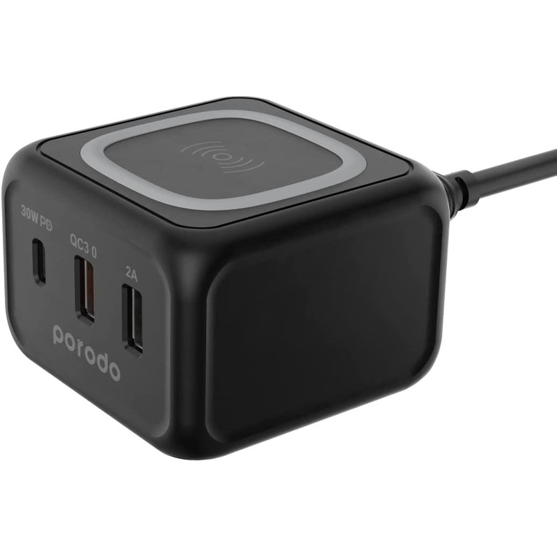 شارژر بی سیم پرودو مدل PD-FWCH005-BK یکی از محصولات شرکت معتبر گیمینگ پرودو است . این کالا مجهز به شارژ سریع 15 واتی است. این شارژر دارای 3 پین می باشد.توان ورودی و خروجی در گاه های مختلف شارژر بی سیم پرودو مدل PD-FWCH005-BK :توان ورودی 100V-240V 50/60Hz 1.5A. توان خروجی USB-C : 5V/3A, 9V/3A, 12V/2.5A, 15V/2A, 20V/1.5A 30W. توان خروجی USB-A QC:5V/2.4A, 9V/2A, 12V/1.5A 18W. توان خروجی USB-A : 5V/2A 10W خروجی بی سیم :5W/7.5W/10W/15W. توان کل :45W