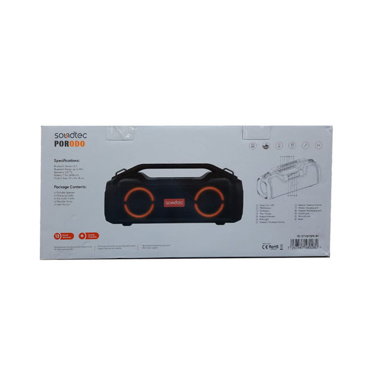 اسپیکر بلوتوثی قابل حمل پرودو مدل soundtec PD-STVBPSPK-BK که در اواسط سال 2021 تولید شده است از بهترین و با کیفیت ترین محصولات این شرکت است.