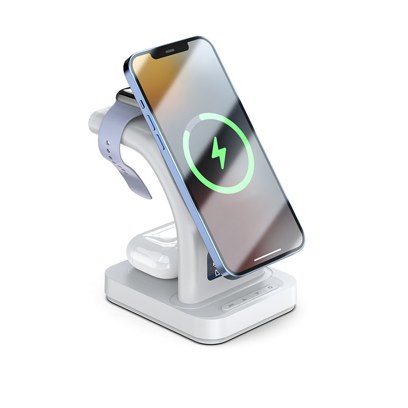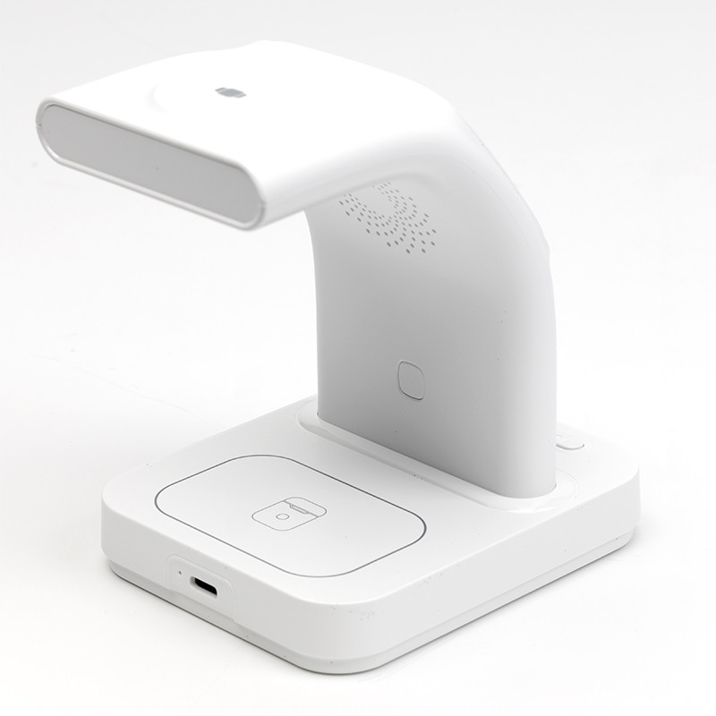 با شارژر بی سیم هیسکا مدل HR-09 یک محصول خریداری میکنید، اما در اصل 5 محصول مختلف دریافت میکنید! این محصول ویژگی شارژ گوشی موبایل شما در کنار شارژ ساعت هوشمند و هدفون بیسیم را ارایه میدهد. در این محصول همچنین یک چراغ خواب و ساعت زنگدار جای گرفته که میتوانید از آنها استفاده کنید. فقط کافی است که شارژر را بهوسیله یک کابل USB به برق متصل کنید و همزمان با شارژ گوشی موبایل، ساعت هوشمند و هدفون بیسیم تان، چندین زنگ هشدار تنظیم کنید و از نورهای رنگی چراغ شب لذت ببرید. مسلما اولین ویژگی این محصول توانایی شارژکردن گوشی هوشمند شما است. شما میتوانید گوشی موبایل خود را با حداکثر با برق خروجی 15 وات بهراحتی و بیسیم شارژ کنید. این محصول قابلیت شارژ گوشی به صورت عمودی وجود دارد؛ همزمان گوشی خود را بهصورت عمودی شارژ کرده و از آن استفاده کنید ودر عینحال از تماشای ویدیو، تماسهای تصویری و یا بازی خود لذت ببرید. از دیگر قابلیتهای این محصول شارژ ساعت هوشمند و هدفون بیسیم شما در کنار گوشی همراهتان هست. برق خروجی برای ساعت هوشمند حداکثر 2 وات و برای هدفون بیسیم حداکثر 5 وات است. از دیگر قابلیتهای محصول، داشتن چراغ خواب و ساعت دیجیتال است که به وسیله دکمه هایی که پایین محصول قرار دارند میتوانید چراغ خواب را روشن و خاموش و همچنین ساعت دیجیتال را تنظیم کنید. شارژر بیسیم مدل HR-09 محصولی برای هماهنگی امور روزانه شماست که اطمینان خاطر برای شارژشدن تمام دستگاههایتان، بیدارشدن از خواب در زمان دقیق و نور شبانه ملایم را به شما هدیه میکند.