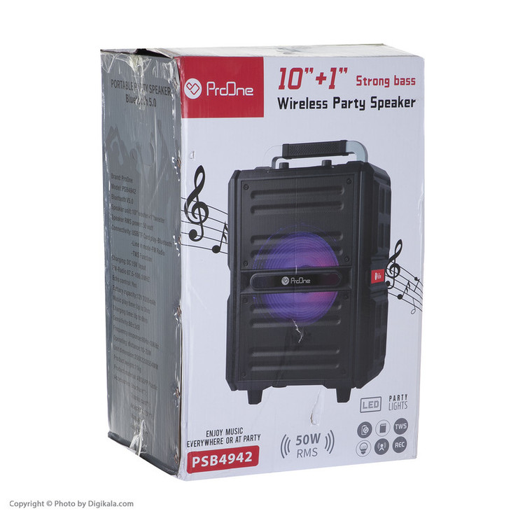 اسپیکرهای بلوتوثی از جمله پرفروشترین محصولات موجود در بازار هستند. این اسپیکرها میتوانند ابعاد بسیار کوچک و یا حتی بسیار بزرگ و اصطلاحاً چمدانی داشته باشند. مسلماً اسپیکرهای بزرگ بیشتر برای مهمانیها و مراسمها مورد استفاده قرار میگیرد. شرکت پرووان از جمله شرکتها شناخته شده در زمینهی تولید اسپیکرهای بلوتوثی است. اسپیکر بلوتوثی قابل حمل PSB4942 از محصولات بالا رده و قدرتمند این شرکت است که میتواند گزینهای مناسب برای جشنها باشد. این اسپیکر توان صوتی فوقالعاده بالای 50 واتی دارد و به راحتی برای استفاده در سالنهای بزرگ مناسب خواهد بود. علاوه بر این، پشتیبانی این اسپیکر بلوتوثی از بلوتوث 5.0، کارت حافظه، AUX و USB میتواند کاربری آن را سهولت ببخشد. از دیگر ویژگیهای قابل توجه اسپیکر بلوتوثی قابل حمل پرووان مدل PSB4942 میتوان به باتری 7000 میلیآمپری اشاره کرد. این میزان باتری میتواند تا سه ساعت شارژدهی داشته باشد.