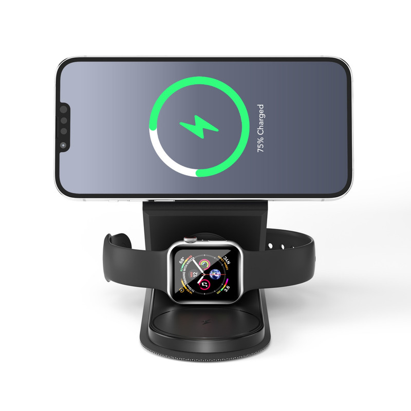 ایستگاه شارژ بیسیم ProOne مدل PWL825، یک راهکار ۳ در ۱ برای کاربران دستگاههای اپل است که امکان شارژ همزمان iPhone، AirPods و Apple Watch را در یک دستگاه واحد فراهم میکند. این شارژر با توان حداکثر ۱۵ وات برای iPhone، ۵ وات برای AirPods و ۲.۵ وات برای Apple Watch، پاسخگوی نیاز شما به شارژ سریع و همزمان خواهد بود، بهویژه زمانی که در حال حرکت یا مشغول کارهای روزانهتان هستید.